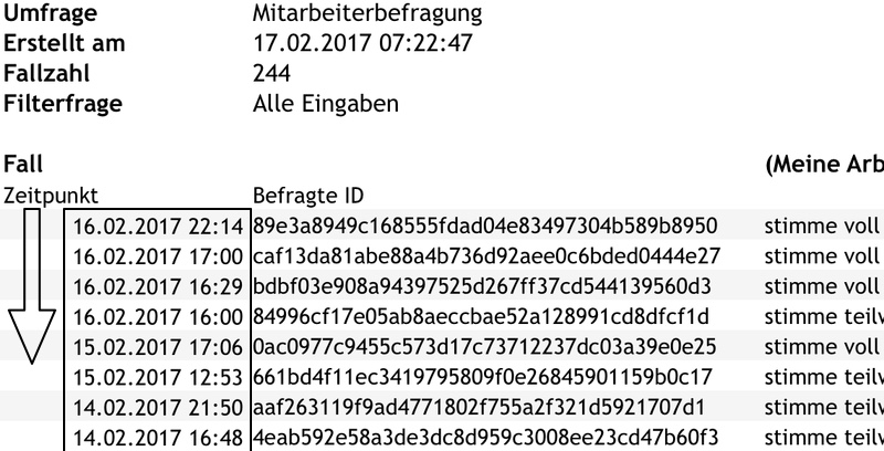 Im (Excel-) Export werden die Befragten nun nach dem Datum ihrer Beantwortung sortiert (Neuste zuerst):