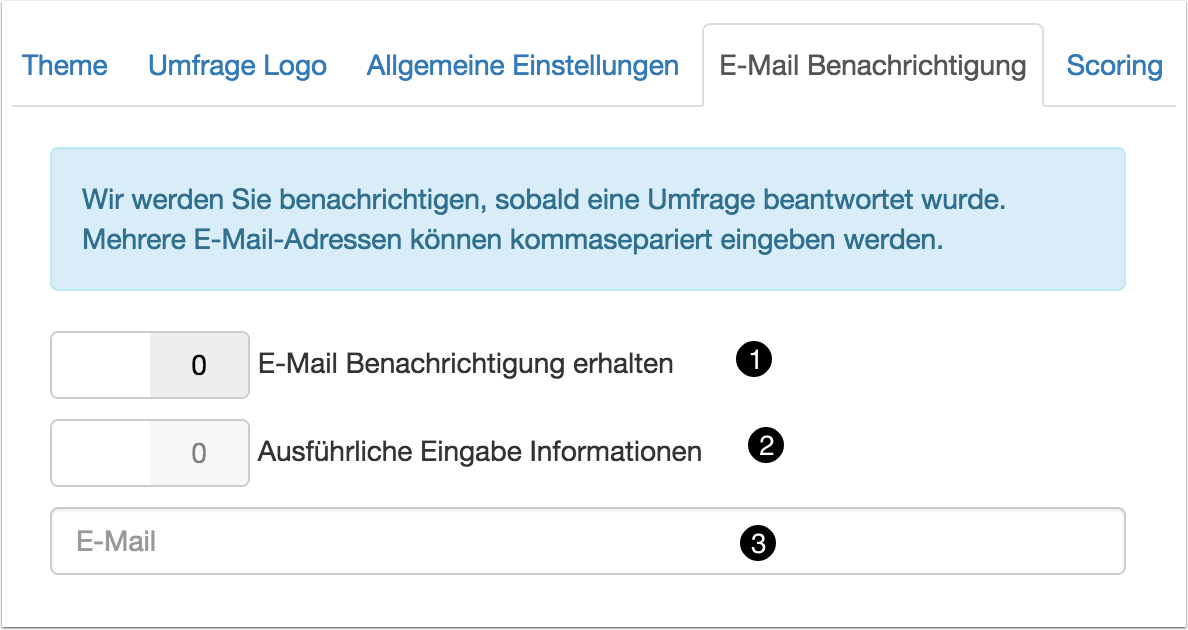 Hier kann angegeben werden, ob und wer bei einer beantworteten Umfrage benachrichtigt werden soll.